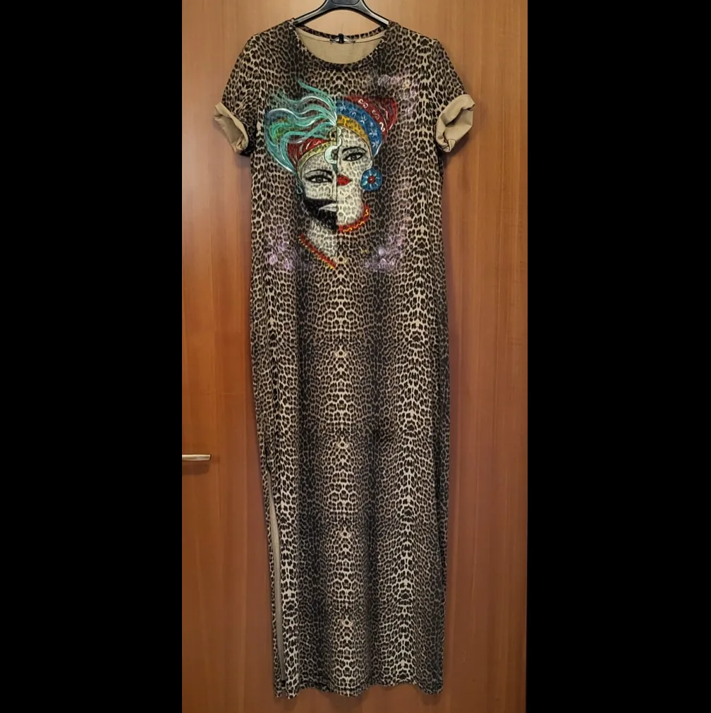 Abito lungo in cotone color verde militare – soggetto Teste di Mori su davanti dipinti a mano