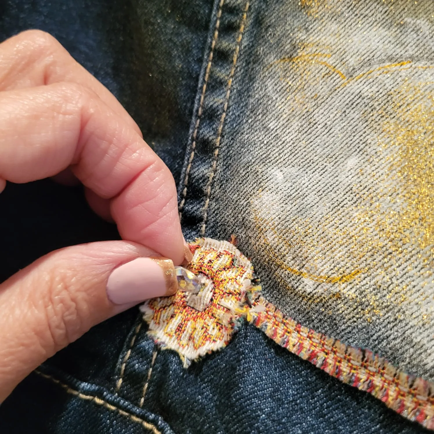 – Tecnica effetto usurato sul davanti e sui polsi in colore oro